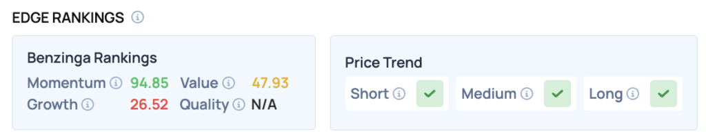 Benzinga Edge Rankings: Data from Benzinga Edge highlights the sheer force of this rally, assigning Intel a Momentum score of 94.85, indicating exceptional buying strength relative to the broader market.